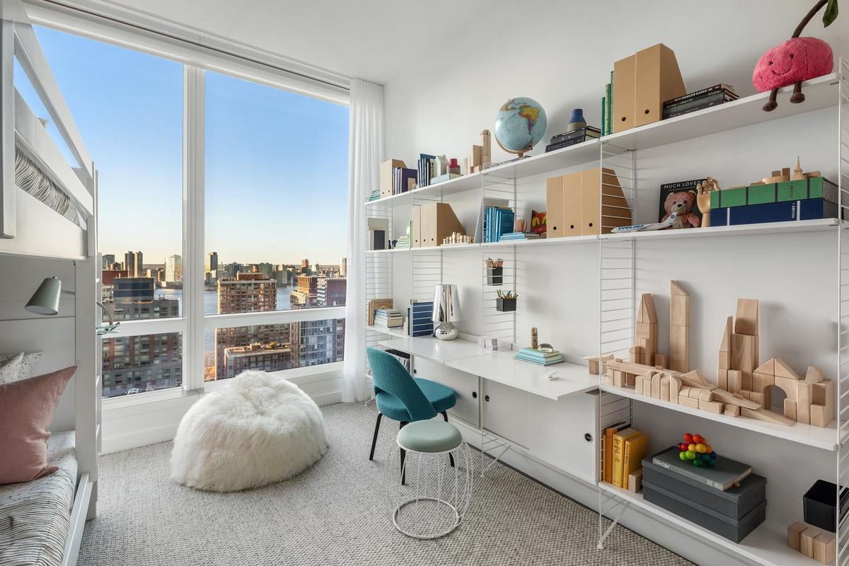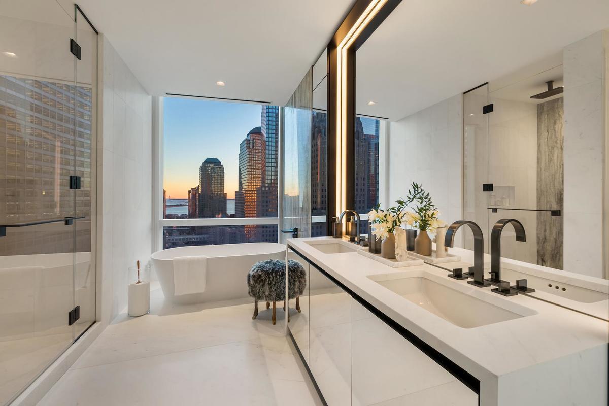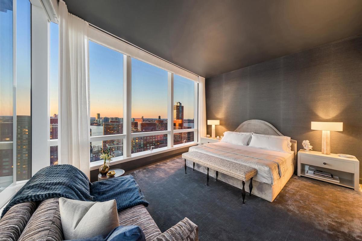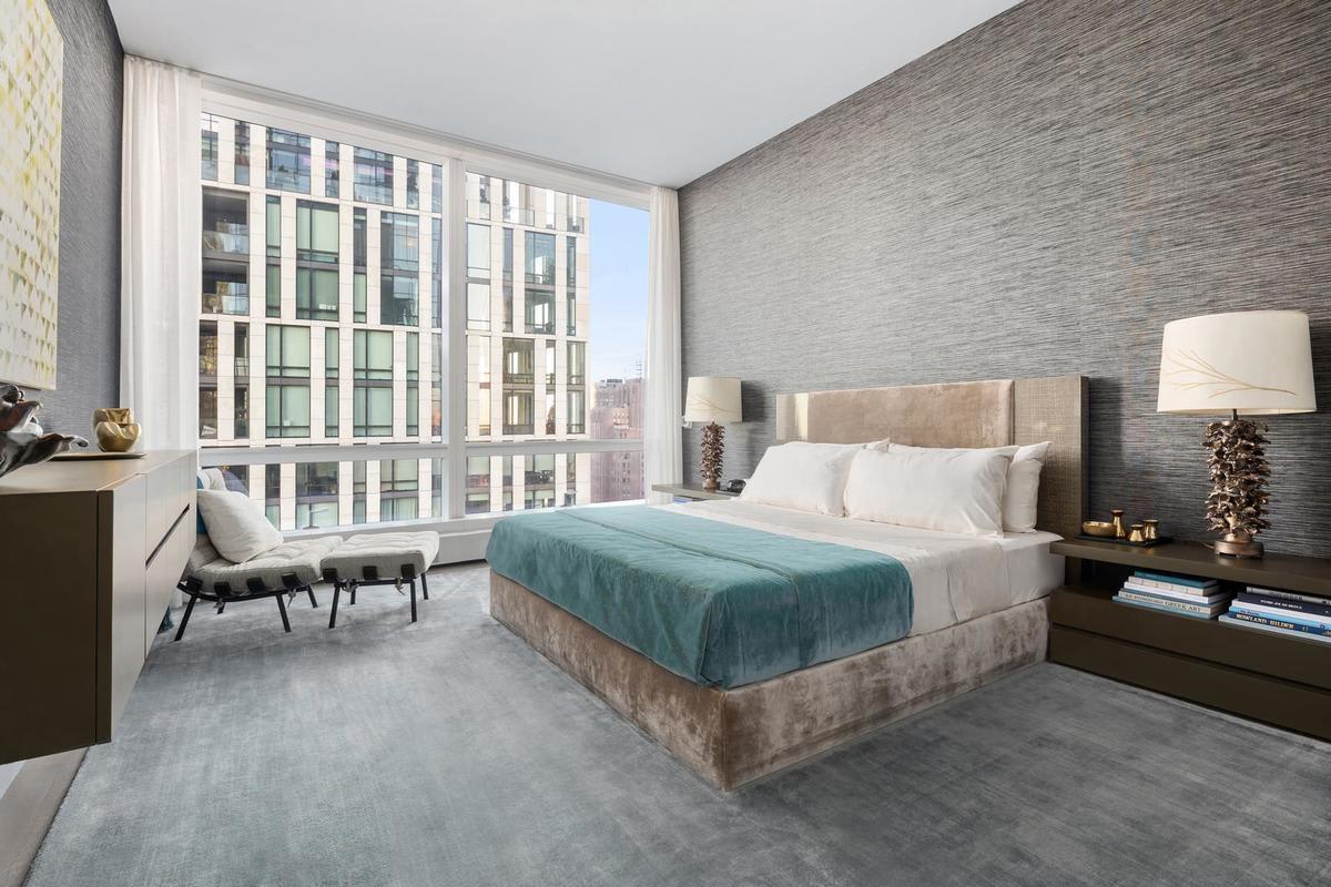 4房4.5衛,2,685平方英尺,天花板高達10’7,瞭望南面和西面廣闊的景色,坐擁哈德遜河及其它地區的電影般全景。走出電梯,開啟大氣的雙開門,通過玄關,進入夢幻的開放式廚房和寬敞的房間。柔和曲線的落地窗,引入自然光,環繞22'7×22'5寬敞的空間,可同時欣賞朝北和朝西的壯麗遠景。開放式廚房設有中島早餐吧台,讓您在娛樂與親密的日常生活中切換自如。精品Molteni訂製廚房,由AD100名設計師David Mann精心設計,使用柔黑色訂製金屬裝飾白橡木櫥櫃,搭配義大利Calacatta Borghini大理石中島,其紋面對齊並配有流理台、工作臺面與背牆,裝有德國當代(Dornbracht)訂製的霧面柔黑廚具設備、兩組食品儲藏櫃,以及配有Wolf、Miele、與Sub-Zero的頂級家電,包含並排的30英寸冰箱和18英寸冰櫃,36英寸的5口瓦斯爐,抽油煙機、嵌入式洗碗機、鑲壁式烤箱、微波爐烤箱、與葡萄酒冰櫃。豪華主臥位於住宅的南端,眺望南面和西面的景致,設有開放式衣帽間,主衛浴鋪設輻射加熱地板,石灰華石牆,鑲上霧面黑色裝飾的德國當代衛浴訂製白色大理石洗臉台,以及遠觀面北景色的BluStone精品獨立浴缸,獨立淋浴間以及獨立抽水馬桶。其他三間臥室均為套房,其中一間位於住家東北角,採光明亮。這間住宅還設有一間客廁,擺放洗衣機和通風室烘衣機的多功能室,以及獨立的服務入口,打造完美住宅。